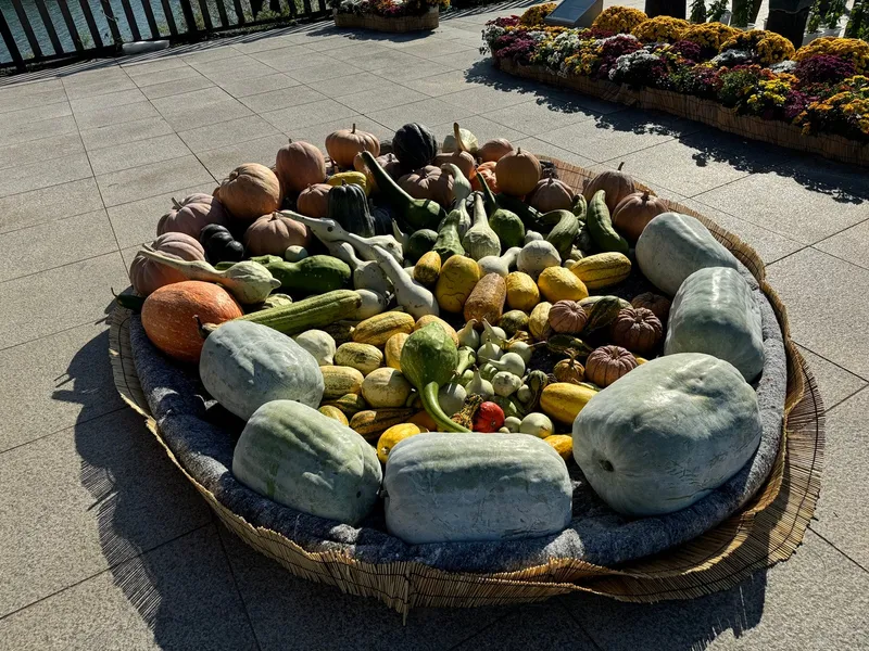 한가득 소쿠리에 담긴 호박과 박들이 가을의 풍요를 보여줍니다.🍁