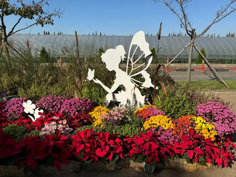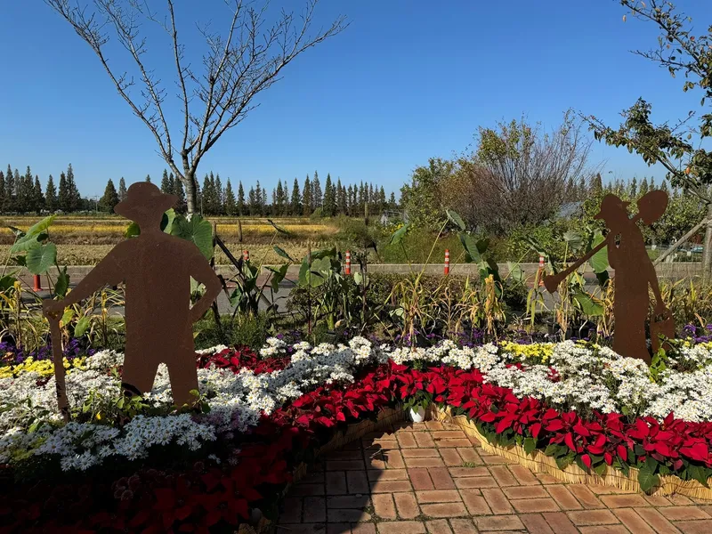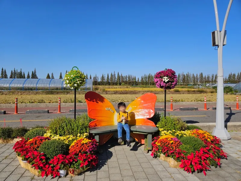 농부 조형물과 가을꽃의 조합이 포근함과 풍요로움을 불러옵니다.