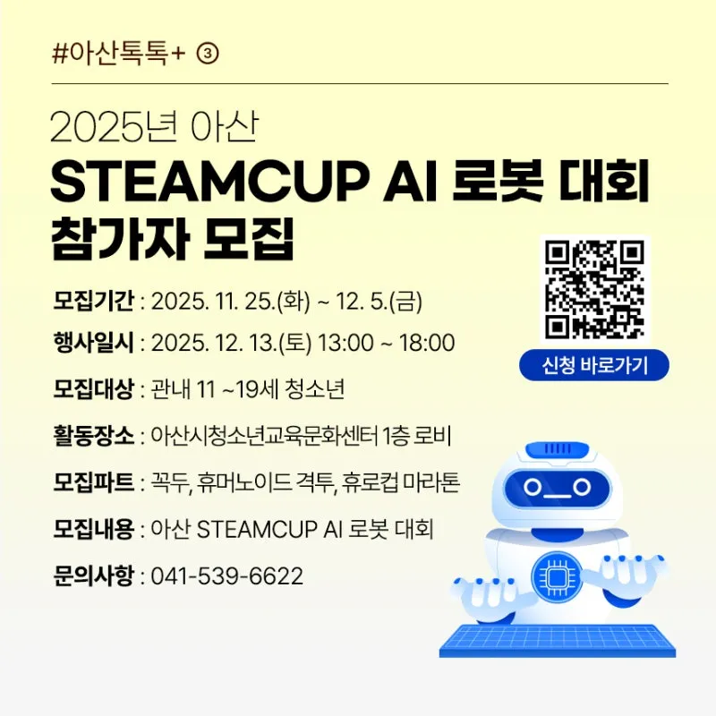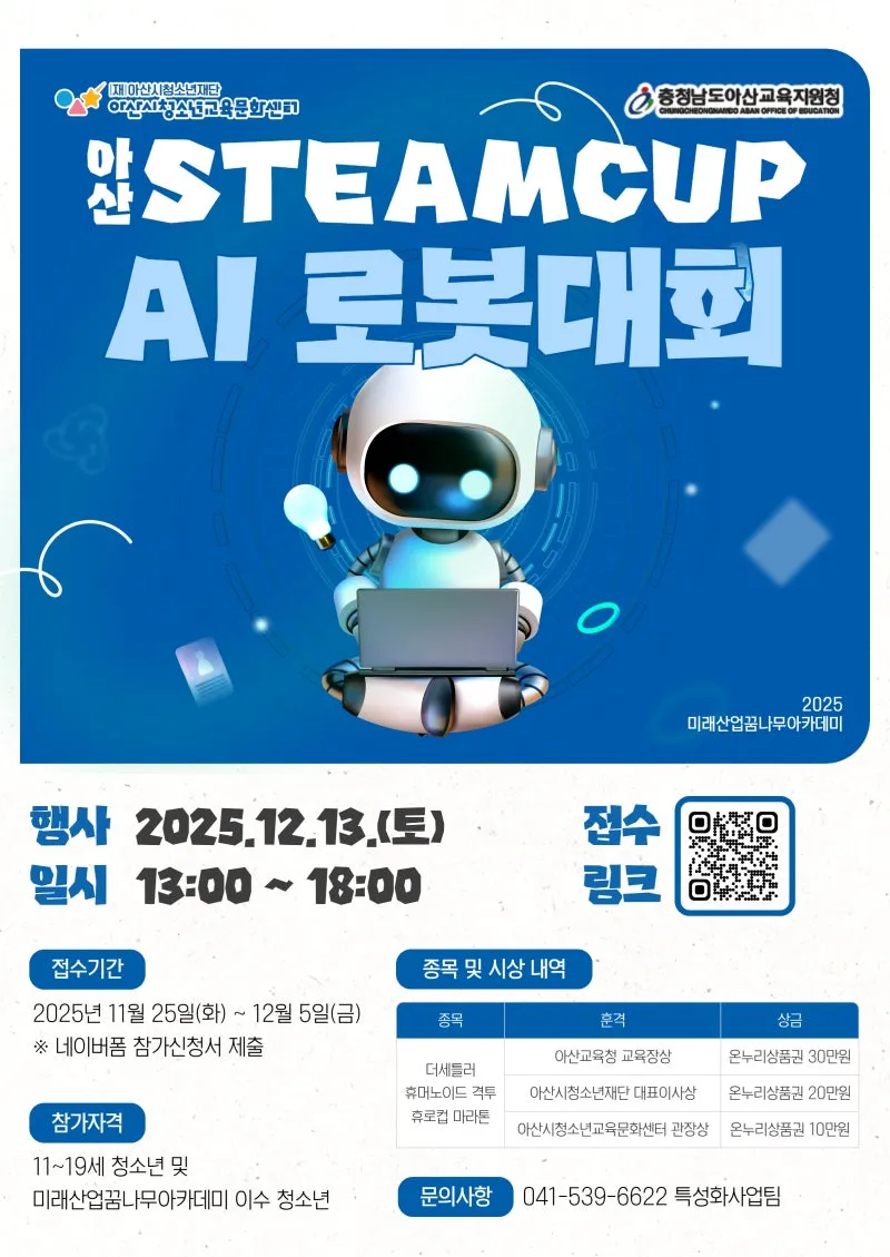 2025년 아산 STEAMCUP AI 로봇 대회 참가자 모집