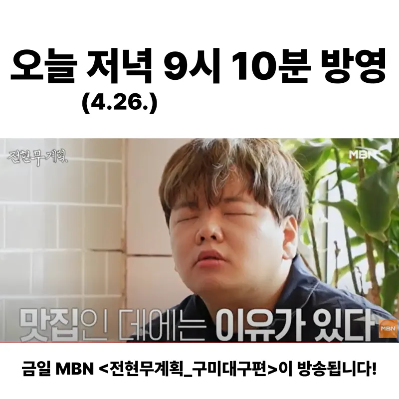 금일 MBN <전현무계획_구미대구편>이 방송됩니다!