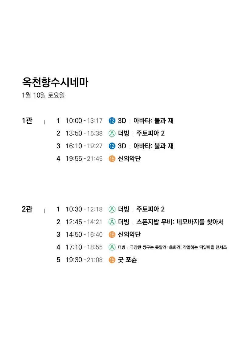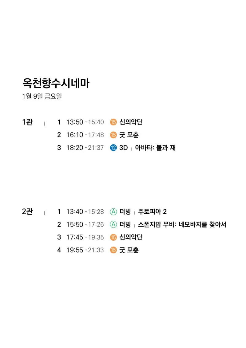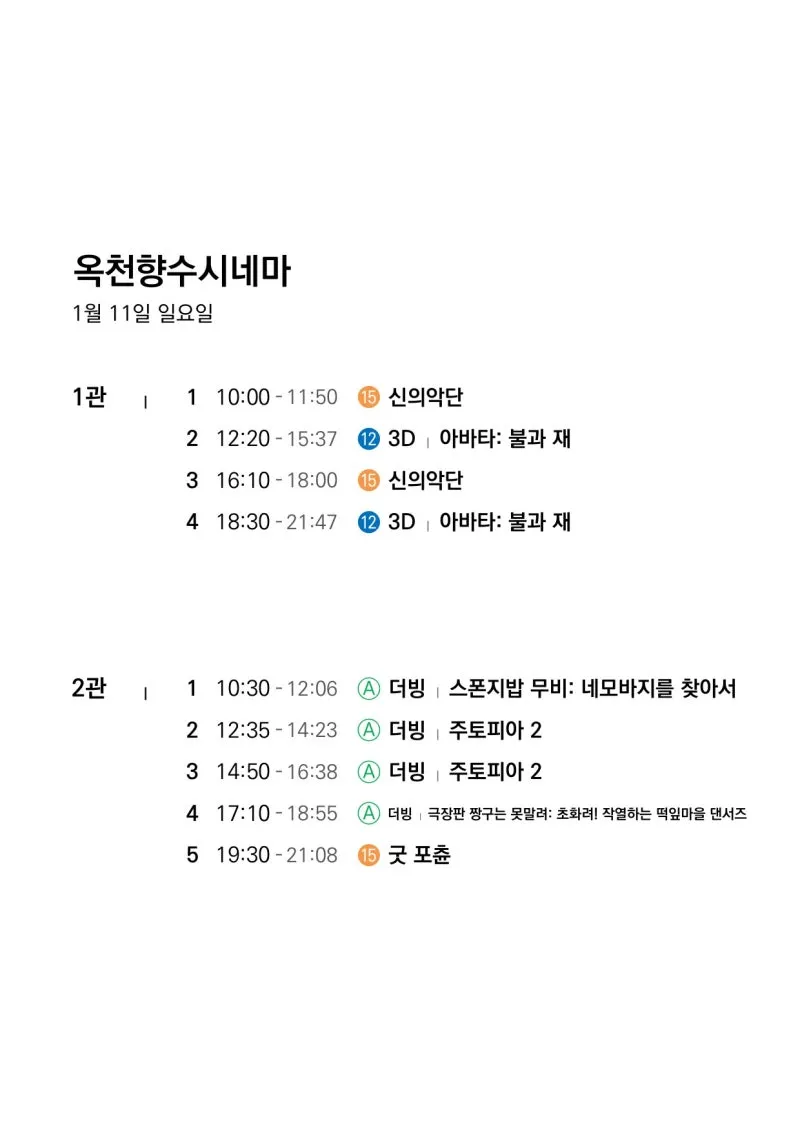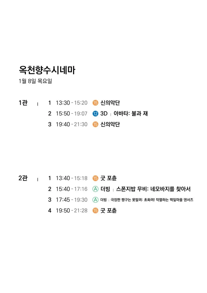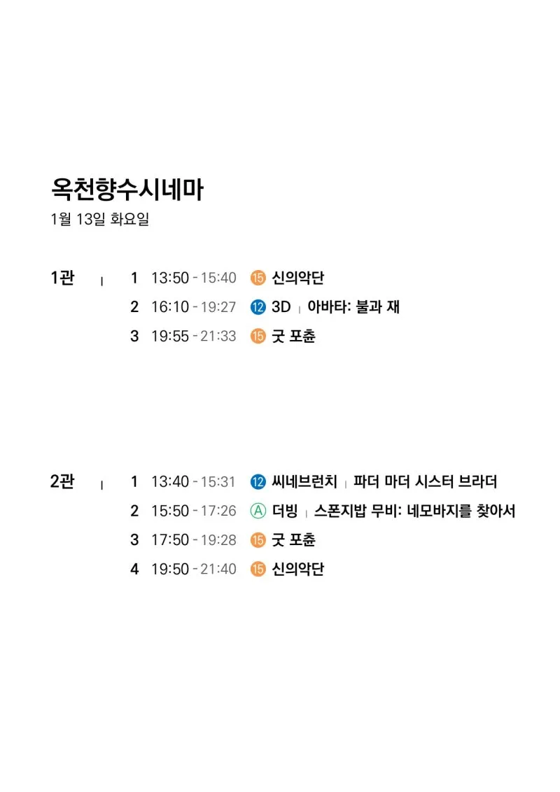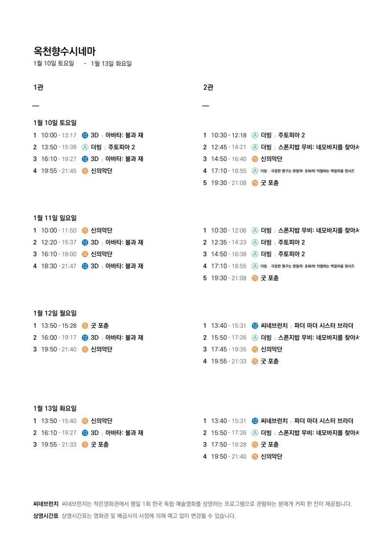 🎬1월 7일(수)~1월 13일(화) 전체 상영 영화 시간표🎬