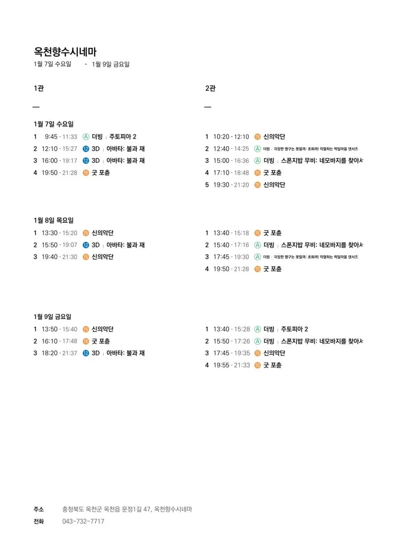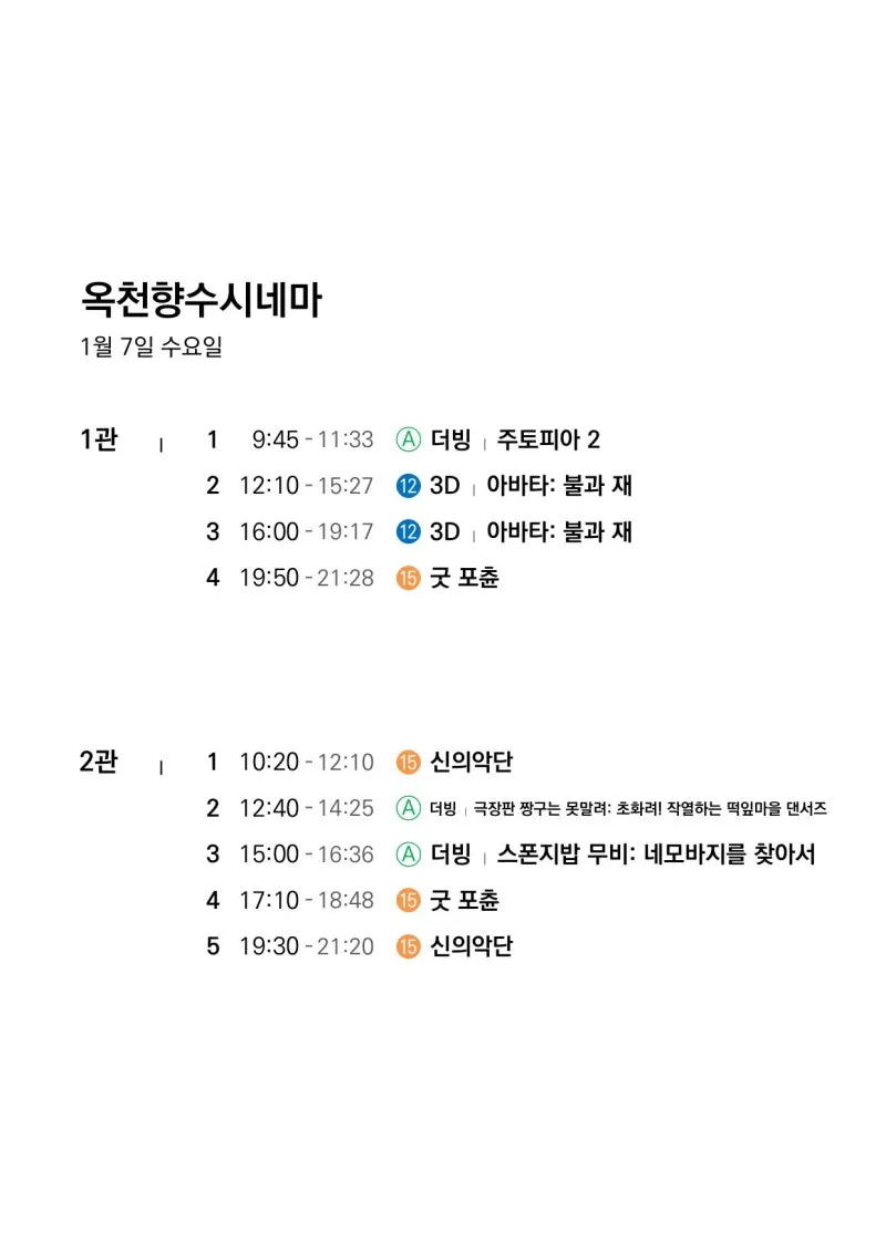 📽1월 7일(수)~1월 13일(화) 일일 상영 영화 시간표📽