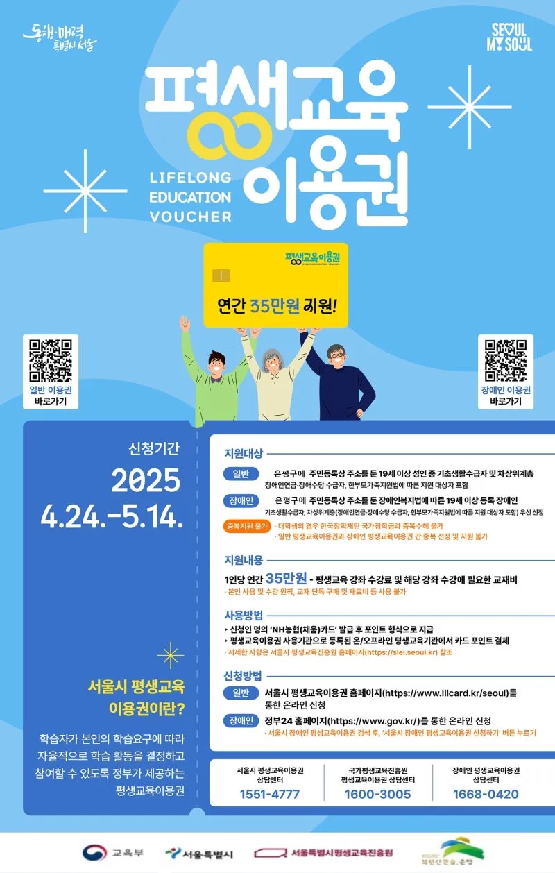 2025년 은평구 평생교육이용권 신청 안내 "연간 35만원 지원"