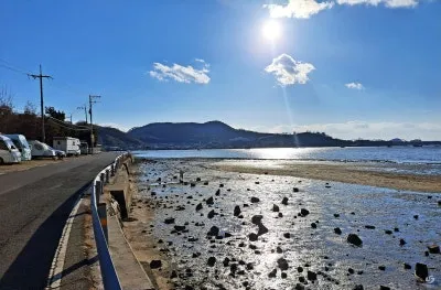 짙게 깔린 구름이 걷히며 잔잔히 찰랑이는 바다 수면 위 서서히 맑은 하늘이 반사된 바다 풍경이 마음을 즐겁게 하고, 머리부터 발끝까지 전해지는 차디찬 바닷바람은 답답했던 가슴을 탁 트이게 해준다.