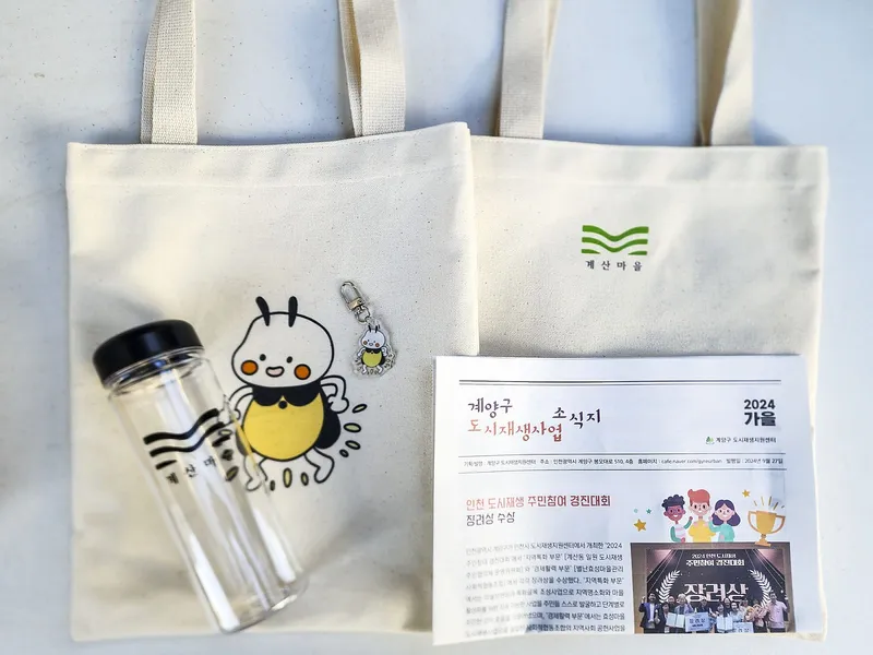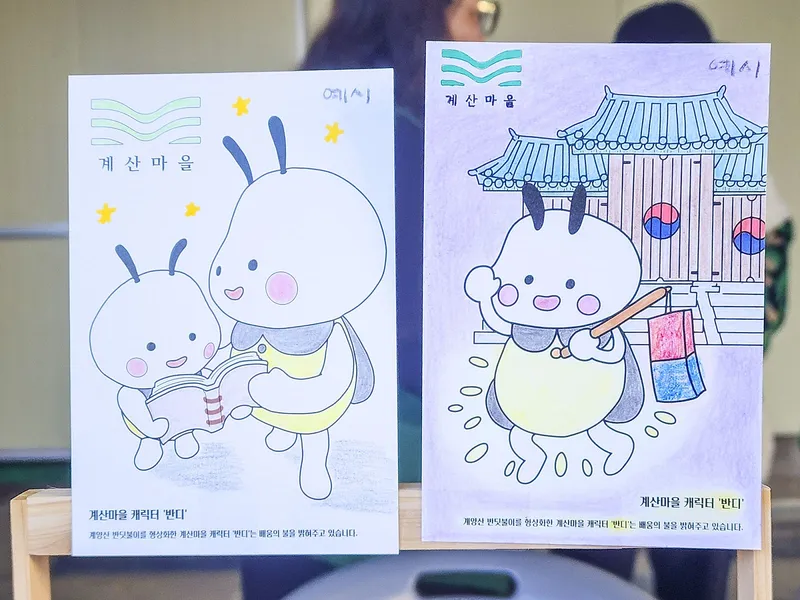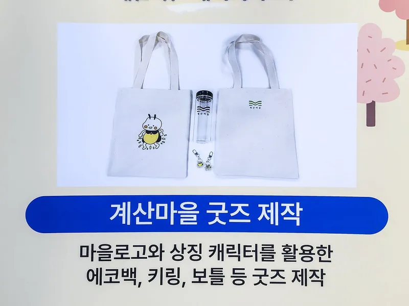 계산마을 로고와 캐릭터 반디를 알리며 일상생활에서 사용할 수 있는 굿즈도 제작했는데, 실용성까지 고려하셨더라고요.👏
