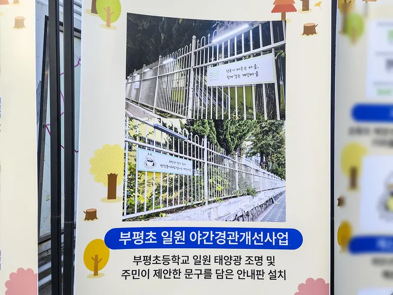 부평초등학교 일원에는 태양광 조명 및 주민이 제안한 문구를 담아 안내판을 설치했으며,
