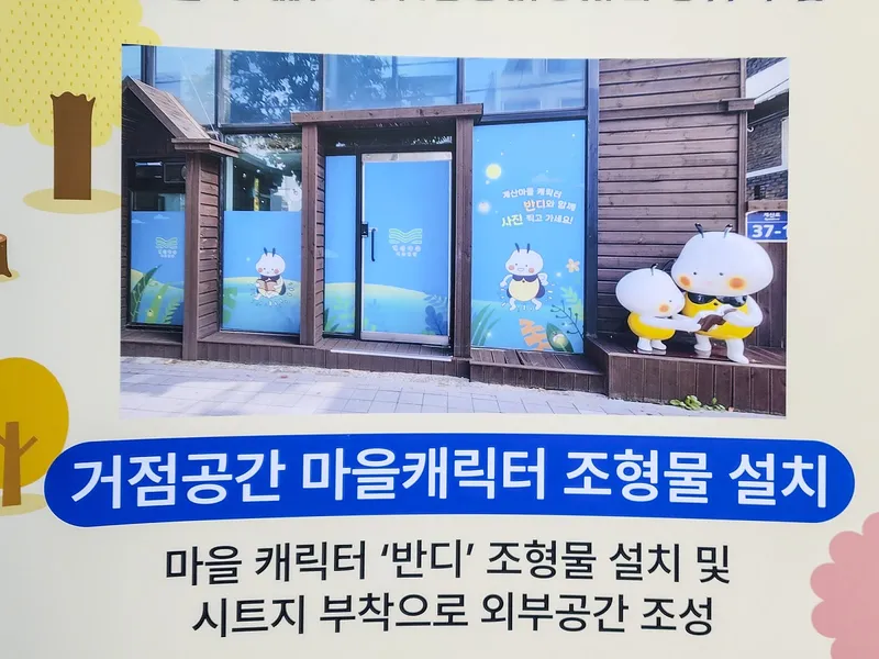 거점공간 앞에는 마을 캐릭터인 '반디' 조형물을 설치했고,