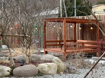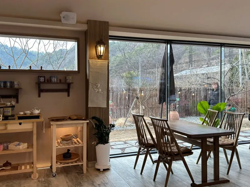 시골의 한적함과 좋은 공기를 온전히 느끼고 싶다면 외부 자리를 추천드립니다.