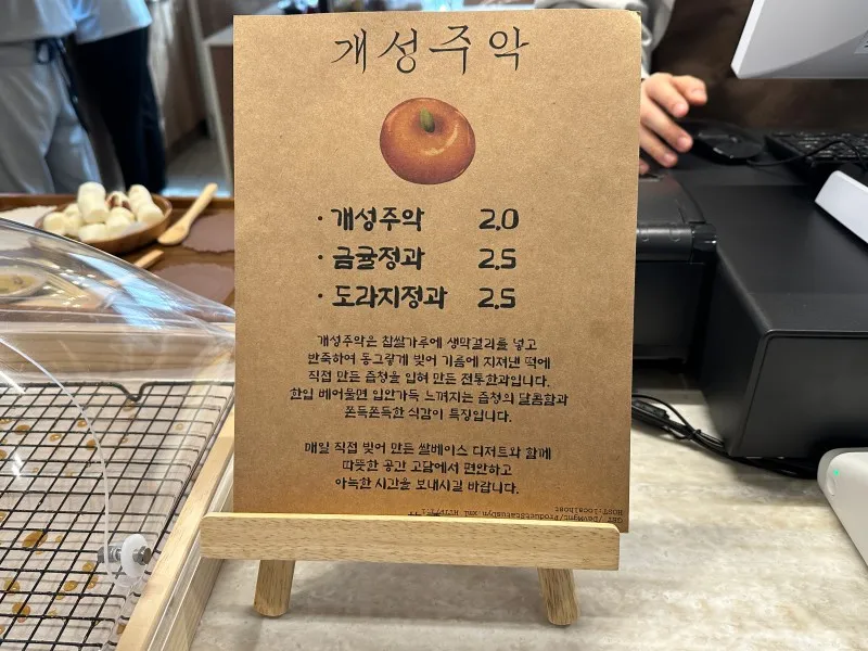 저는 밥을 먹고 방문하여 가래떡 대신 페스츄리 약과를 시켜보았습니다.