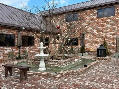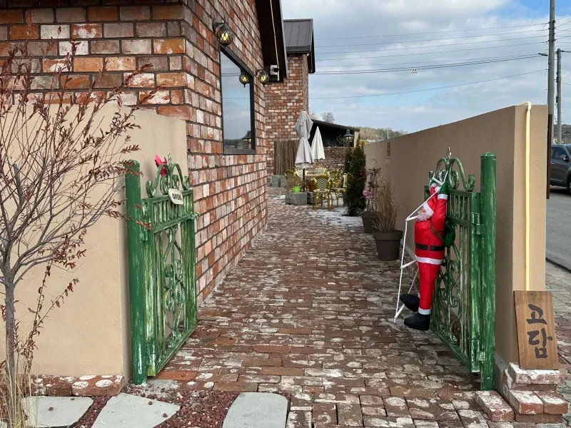 겨울에 맞는 분위기로 꾸며저 있던 카페 외부 공간입니다.