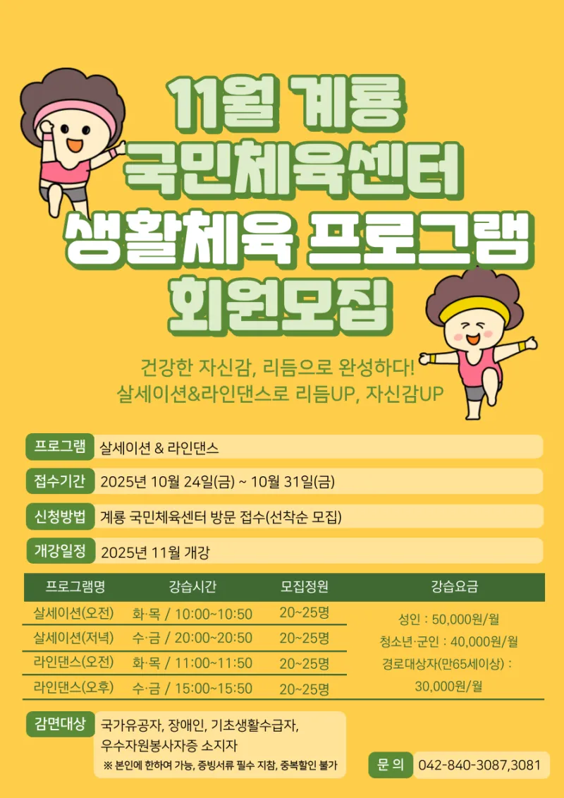 2025년 11월 계룡 국민체육센터 생활체육 프로그램