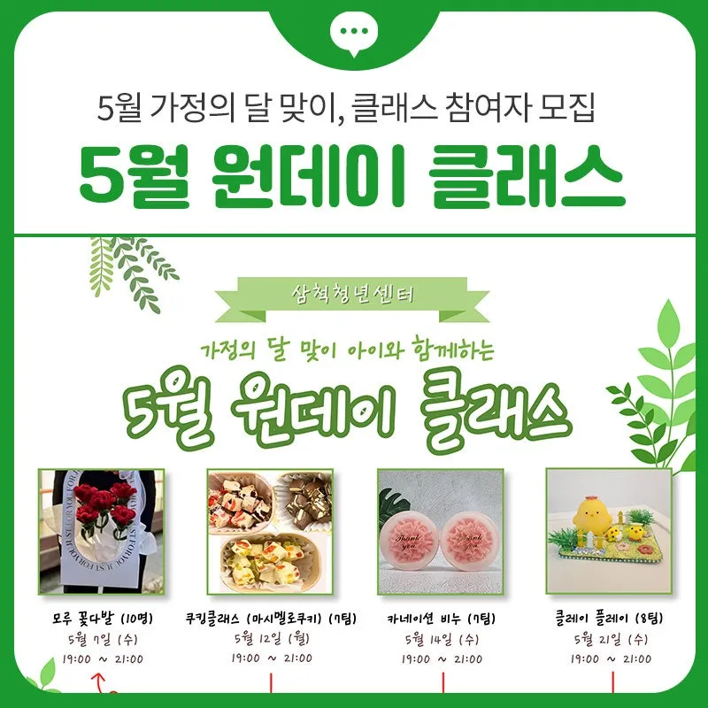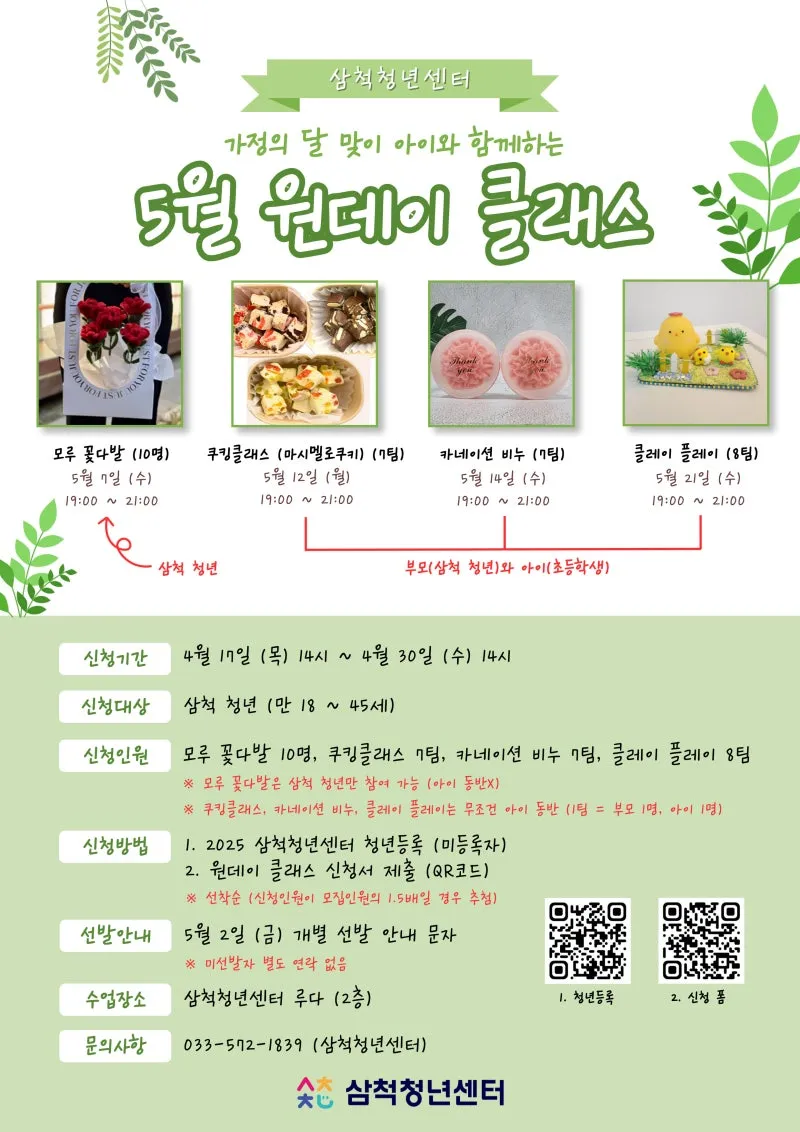삼척청년센터, 5월 가정의 달 맞이 원데이클래스 참여자 모집