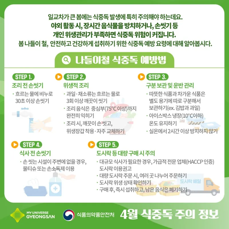 봄나들이 철, 안전하고 건강하게 섭취하기 위한 식중독 예방 요령에 대해 알아봅시다!
