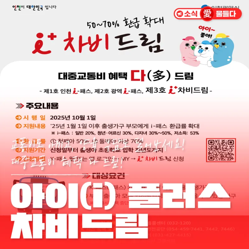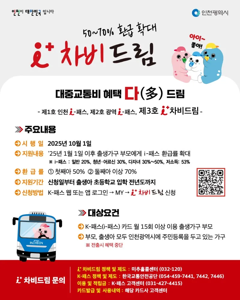 교통비도 아끼고, 양육 부담도 덜어보세요! 대중교통비 혜택 다(多) 드림! 아이(i)플러스 차비드림
