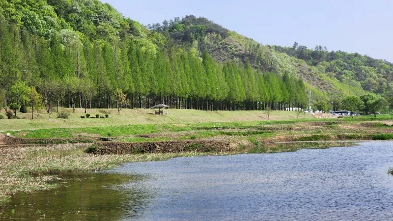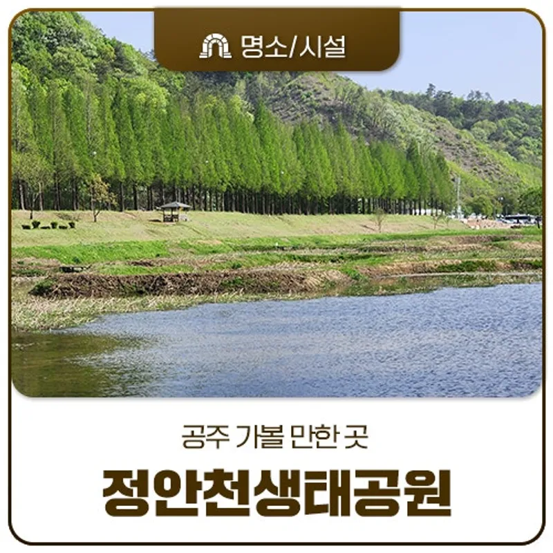 정안면에서 발원한 정안천이 신관동에 이르러 금강과 합류하기 직전, 정안천 하류의 둔치는 농경지로 쓰다가 버려졌던 땅을 3년에 걸쳐 공주시민과 공무원들이 합심하여 일궈내 휴식과 산책을 겸할 수 있는 생태 자원으로 재탄생한 곳이에요.