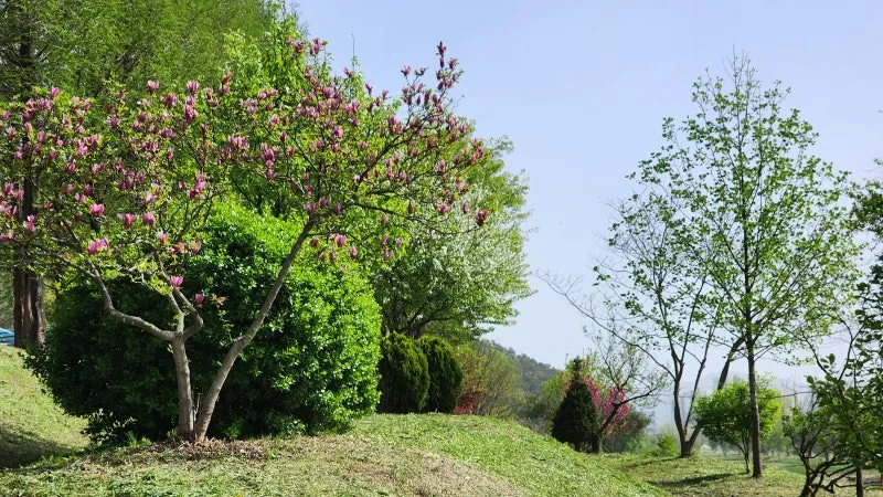 다른 지역은 목련이 다졌는데 이곳 공원에는 늦게까지 자목련이 피어 있네요.