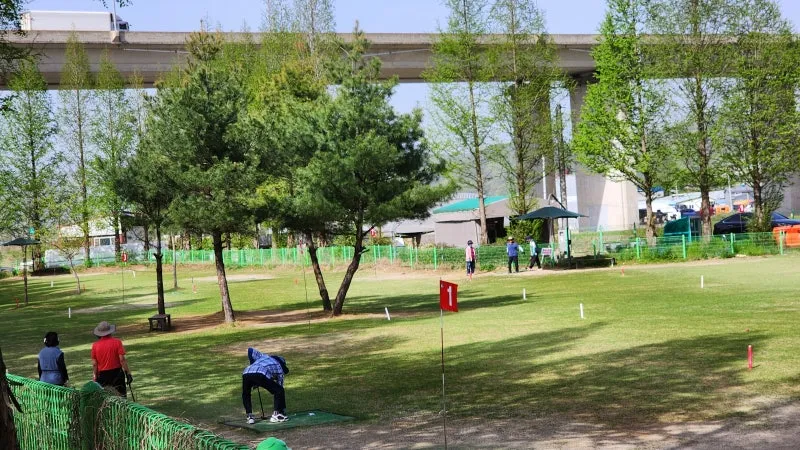공주시장애인복지센터를 지나 장안천 생태공원의 핫스팟 메타세쿼이아길로 향합니다. 주변에 게이트볼장이 있어 어르신들이 가볍게 운동을 즐기고 계셨어요.