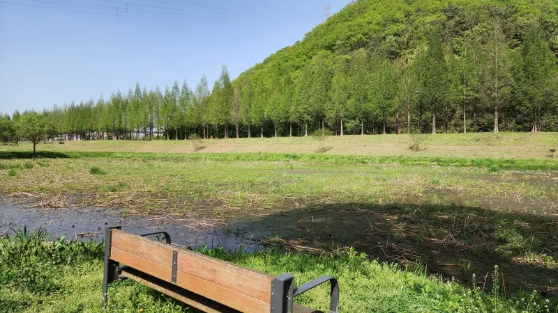 생태탐방로를 따라 걷다 보면 연꽃을 비롯해 창포, 부들과 같은 수서식물과 텃새가 되어버린 흰빰검둥오리 등 습지에 서식하고 있는 다양한 동식물을 감상할 수 있어 체험학습장으로도 많이 찾고 있어요. 지금은 때가 아니라 연못도 새 단장을 하며 준비를 하고 있는데요.