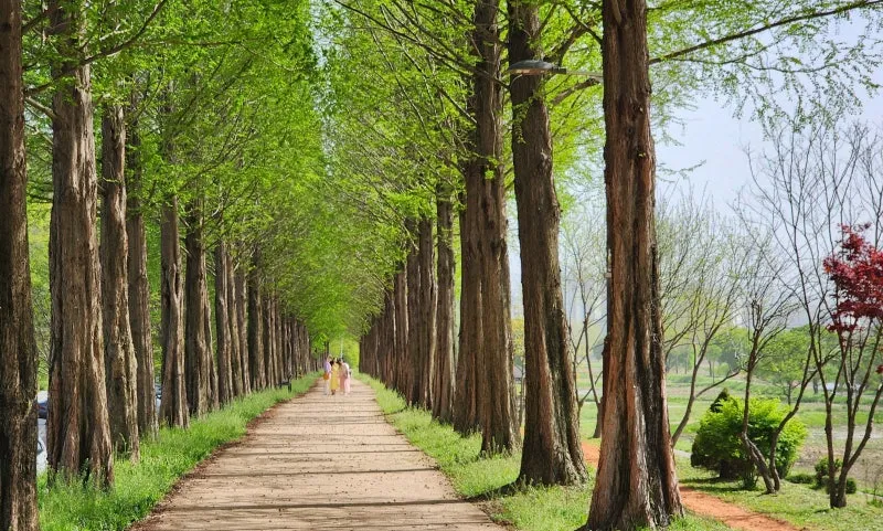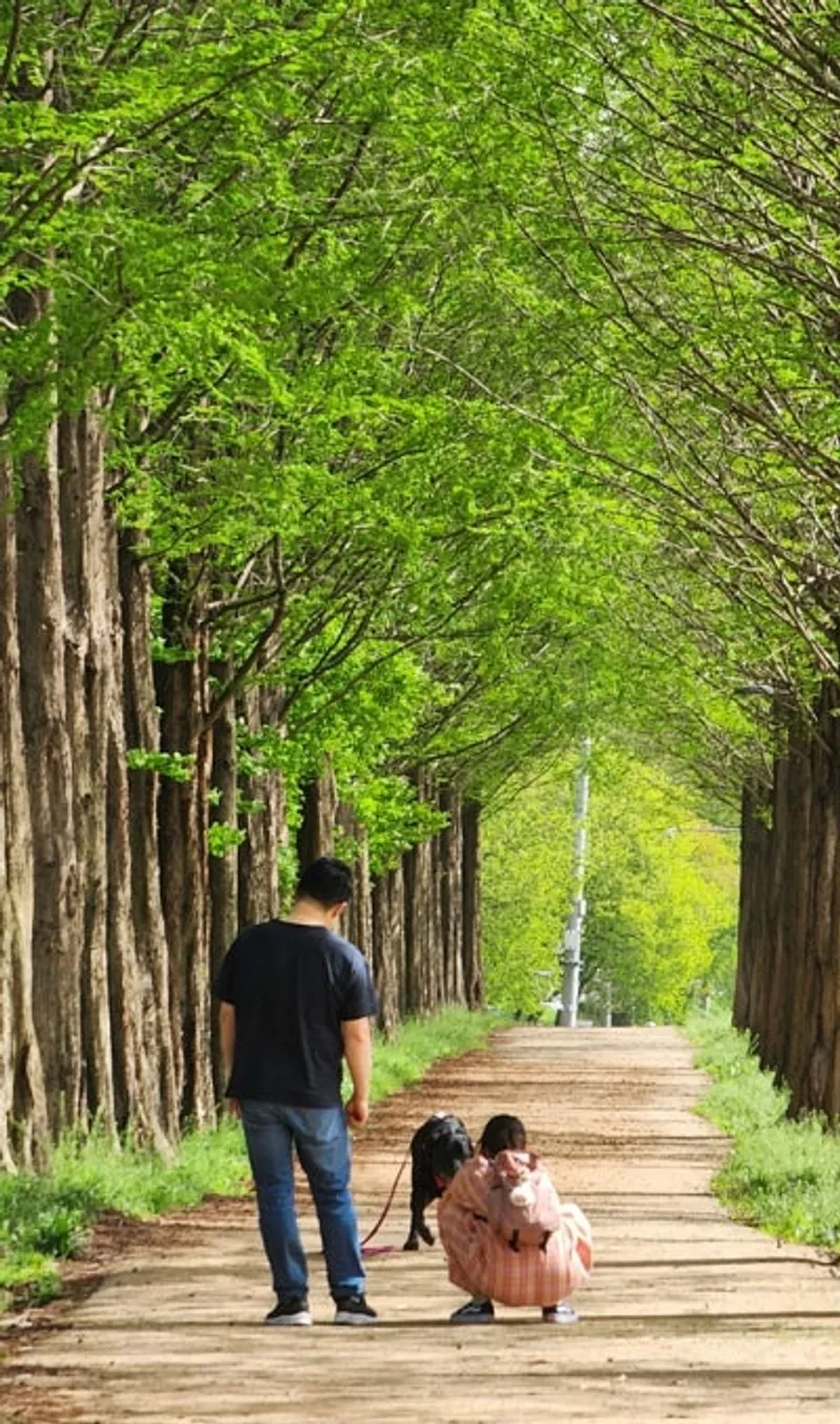 500m 구간에 심어진 192그루의 메타세쿼이아는 싱그러운 초록으로 옷을 갈아입고 또 다른 매력을 선사하며 푸르른 터널을 지나는 듯한 기분을 느끼게 합니다. 수령이 오래되지 않아 나무 둘레가 굵지는 않지만 무더운 여름, 그늘이 되기에는 충분해 가볍게 산책하며 계절의 변화를 풍경을 만끽하면 좋을 것 같아요.