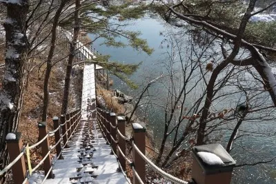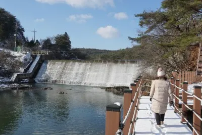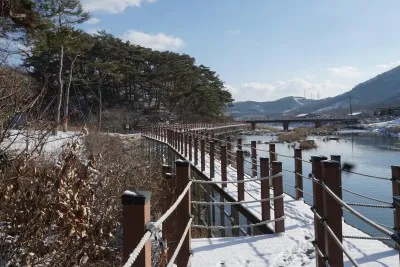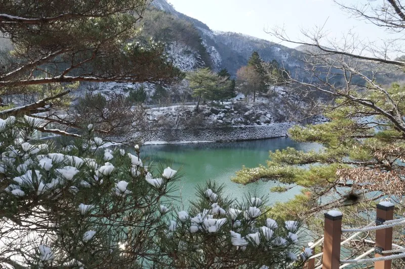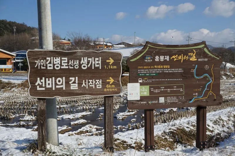 낙덕정은 이 곳으로부터 훈몽재에 이르는 약 6km의 ‘선비의 길’이 시작되는 출발점이기도 한데요. 하서 선생이 제자들과 함께 거닐었을 선비의 길을 따라 걸으면서, 과거 선비가 가졌을 덕목에 대해 잠시 생각해보았습니다. 시작점인 낙덕저수지까지 올라가봤는데요. 소복이 내린 눈 길을 천천히 걷노라니, 흐르는 강물소리, 겨울 바람 소리, 눈덮인 설산의 풍광이 함께 어우려져 동양 산수화 속으로 풍덩 들어와 있는 듯한 착각을 주었습니다. 눈 내린 선비의 길 산책은 바쁜 일상을 뒤로한 무념무상, 힐링 그 자체였답니다.