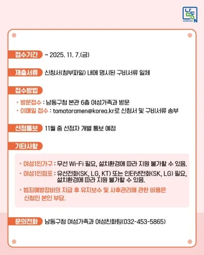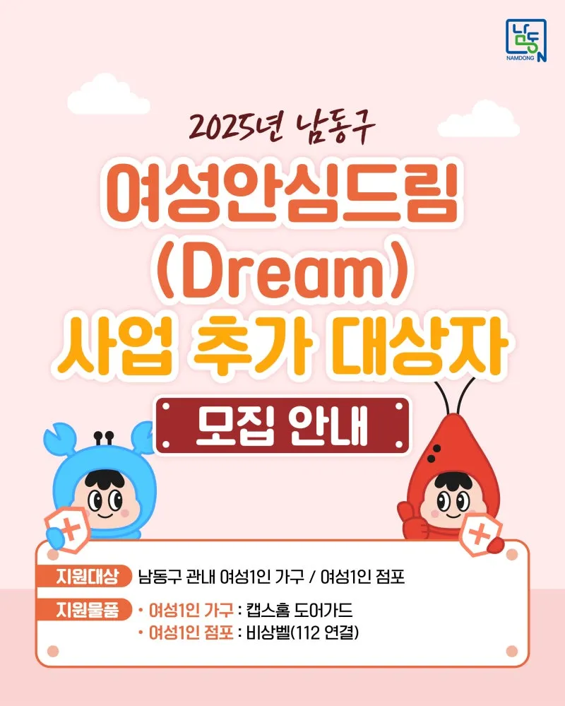 2025년 남동구 여성안심드림(Dream)사업 추가 대상자 모집 안내
