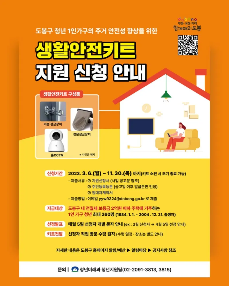 지원내용: 주거용 보안물품으로 구성된 ‘생활안전키트’ 1인 1회 무료 지원