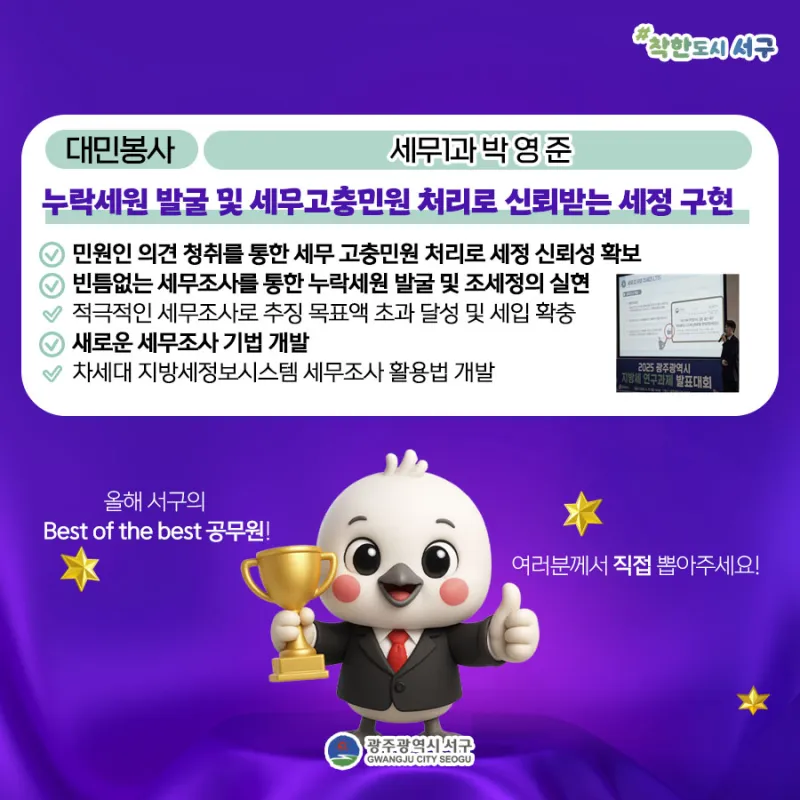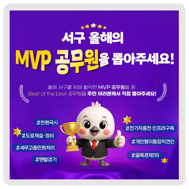 이제 여러분의 한 표로 서구 올해의 MVP 공무원을 직접 선정해주세요!