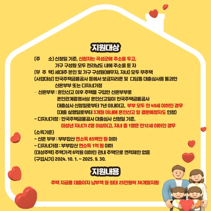 2025년 곡성군 신혼부부·다자녀가정 보금자리 지원사업