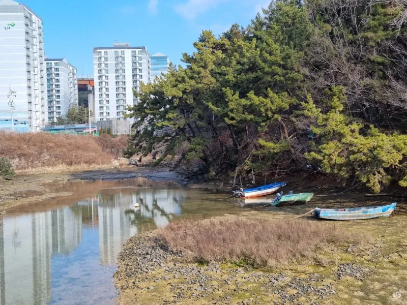 온 사방에 봄을 알리는 계절에 바다의 아침은 겨울옷을 그대로 입고 있습니다. 하지만 모든 것을 다 수용할 듯 평화롭습니다. 삶의 터를 이루고 있는 어촌의 정경이나 방파제를 걸어보고 싶은 충동이 일렁입니다. 내친김에 가포 해안산책로를 따라 방파제까지 걸어서 가보겠습니다.