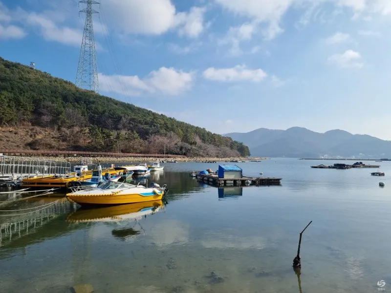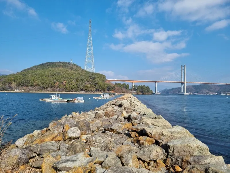 전망대에 서니 스산한 바닷바람에 코끝이 시리며 온몸이 꽁꽁 얼어붙는 것 같습니다. 하지만 제 고향 귀산동이 그대로 드러나고 고향처럼 친숙한 바다가 주는 편안함에 한참이나 서성이며 마음껏 만끽합니다.