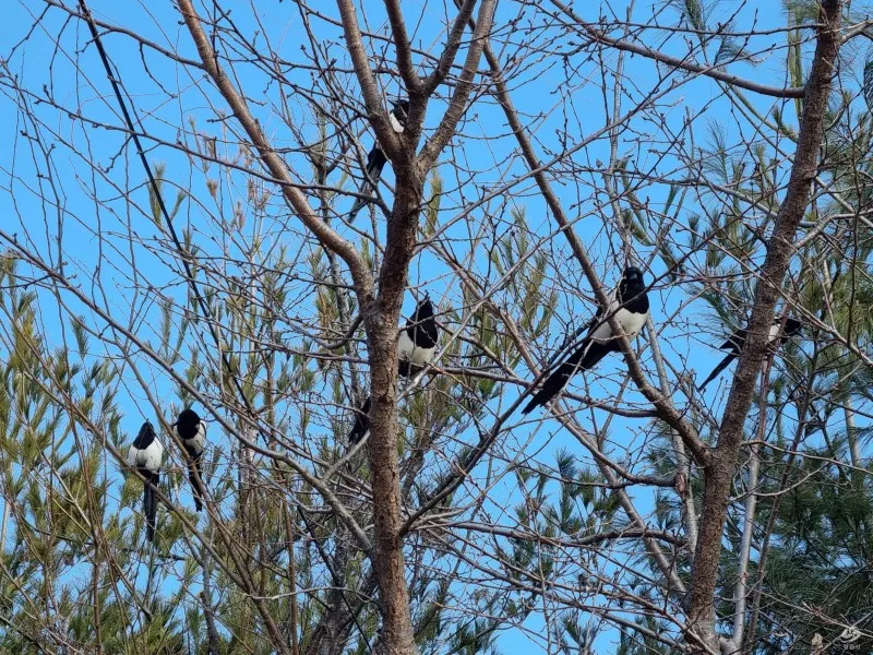 포르르 포르르 날기도 하면서 나무에 앉았다 바닥에 앉았다 먹이활동을 하는 것일까요? 반가운 손님이 왔다는 것을 알리는 것일까요? 까치들이 부르짖는 함성 소리에 괜스레 반가운 손님이 된 것처럼 기분이 좋아집니다.