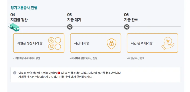 경기교통공사에서 지원금 정산 ▶ 지급 대기의 순서를 거쳐