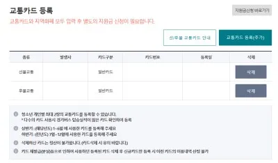 ※ 청소년 개인별 최대 2장의 교통카드 등록 가능