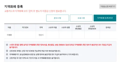 지원금이 개인카드로 들어오는 것이 아니라 지역화폐로 지원받으니