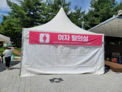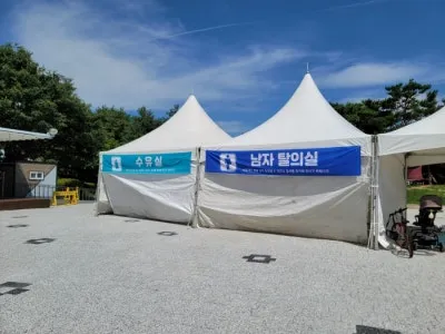간이 천막을 이용한 수유실,