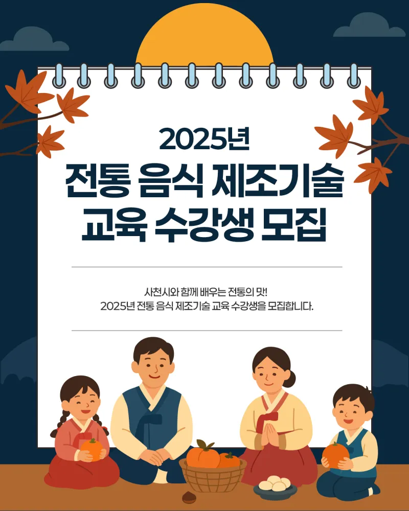 2025년 전통 음식 제조기술 교육 수강생을 모집합니다.