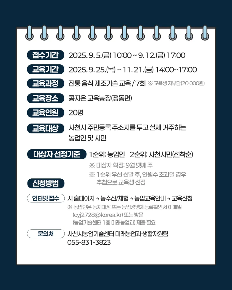 - 문의처: 사천시농업기술센터 미래농업과 생활자원팀(055-831-3823)
