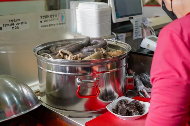 주문을 하면 이렇게 바로 주방에서 조리해주시더라고요. 탱글탱글한 순대를 보고 있자니 벌써부터 군침이 흐르는 것 같아요(촬영 때문에 2시까지 밥도 못 먹고 기다리는 중😩)