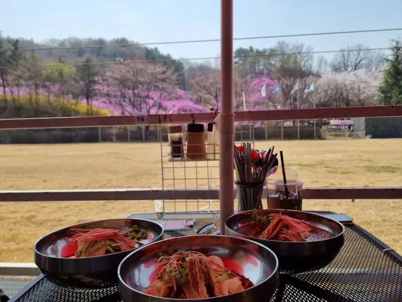 우리 일행은 진달래동산 바로 옆 식당에서 진달래 밀면을 먹었다.