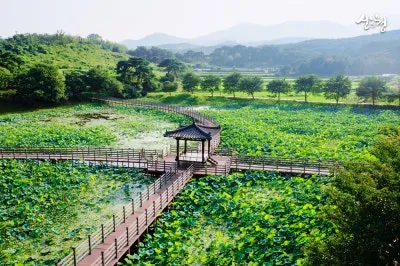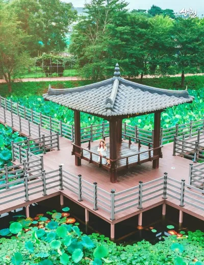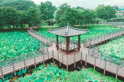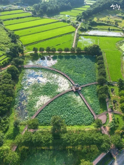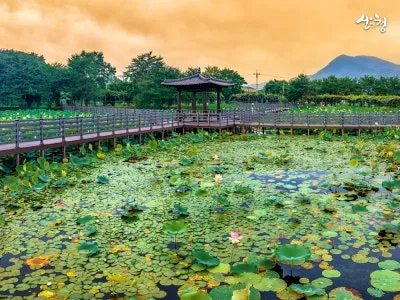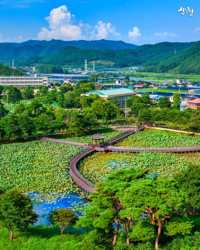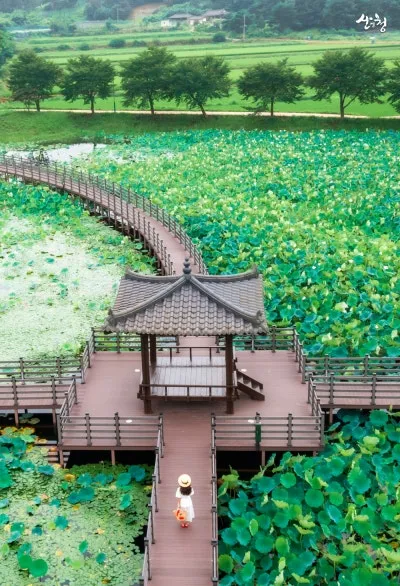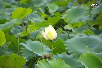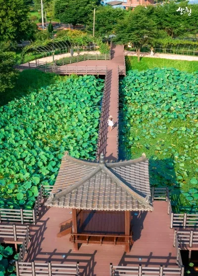 여름이면 연꽃이 활짝 피어나고, 연잎이 수면을 뒤덮어