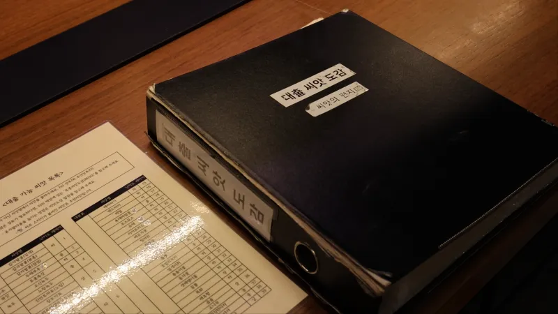 안내 데스크에서 씨앗 대출 대장을 작성하고