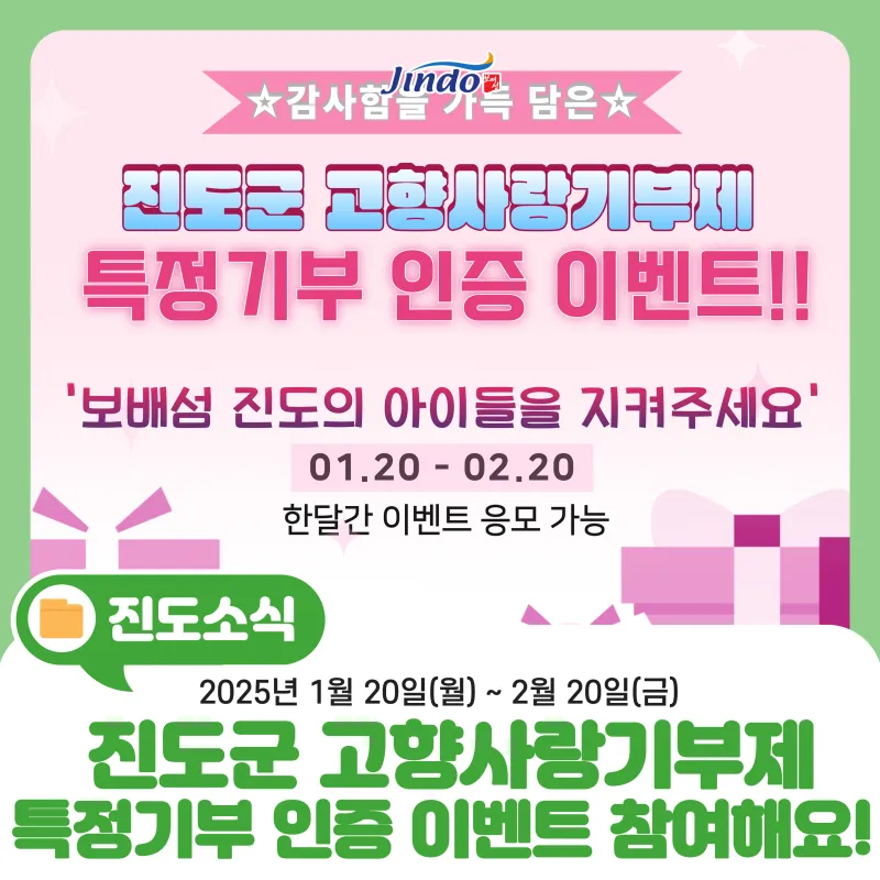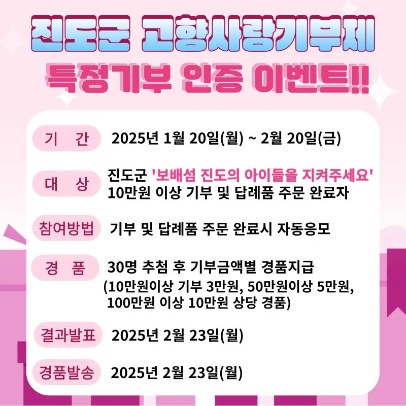 [고향사랑기부제 기부방법] 진도군 고향사랑기부제 특정기부 인증 이벤트 참여해요!