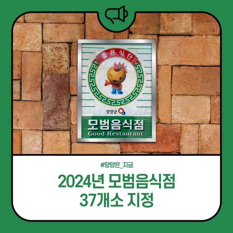 양양군이 2024년도 모범음식점으로