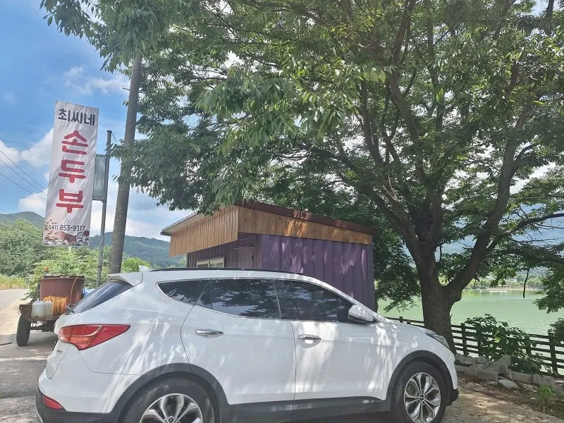 주차공간이 있어 잠시 정차한 공주 가볼만한곳 계룡면 양화저수지 근처, 최씨네 손두부 앞입니다. 저와 같은 뷰를 보고 싶으신 분들은 네비에 "최씨네 손두부"를 검색하고 오셔도 괜찮을 듯 보였습니다.