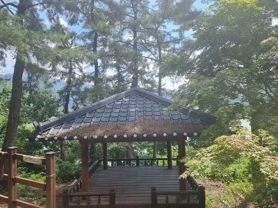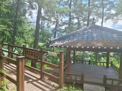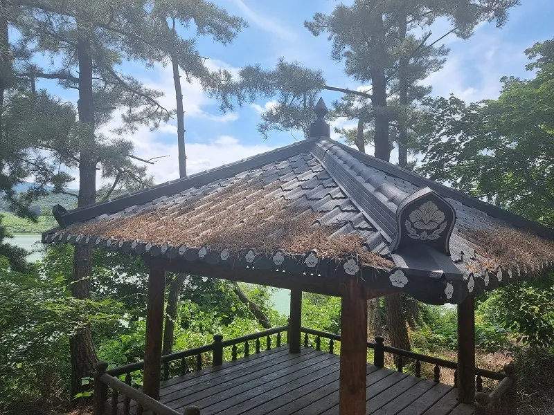 이왕 내린 김에 공주 가볼 만한 곳, 계룡면 양화저수지의 정자와 나무데크도 한번 걸어 보았는데요. 먼저, 양화저수지의 쉼터, 나무 정자입니다. 약간은 바랜 소나무 잎들이 정자 지붕 위에 쌓여 운치를 더해주였으며, 사진에는 없지만 이곳에 앉아서 바라보는 뷰도 정말 멋있었습니다. 돗자리 같은 걸 가져오면 더욱 좋을 것 같기도 했는데요. 돗자리에 누워 이곳에서 잠시간 낮잠을 청한다면 좋은 꿈을 꿀 수 있을 것 같은 느낌이었어요.