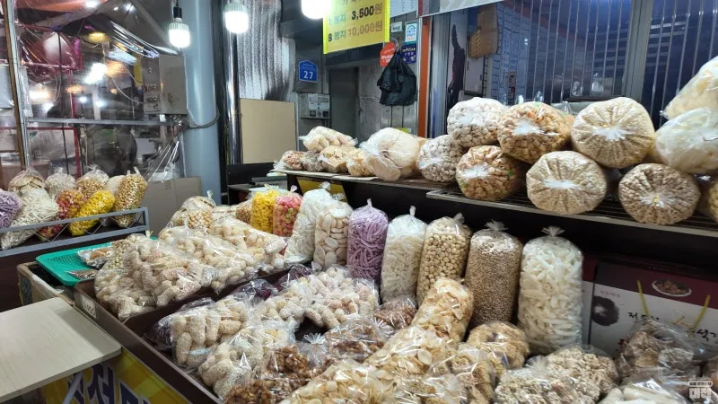 떡볶이나 어묵을 파는 분식집 외에도 요즘 물가에 상상할 수 없는 저렴한 가격으로 판매하는 추억의 옛날 빵집도 있어서 맛있는 빵들을 이것저것 다양하게 골라 담아보고, 고소한 기름 냄새가 중독적인 찹쌀도넛이나 뻥튀기 같은 정겨운 간식들도 판매하고 있어서 시장을 천천히 둘러보며 요깃거리를 드시는 것도 좋겠네요.