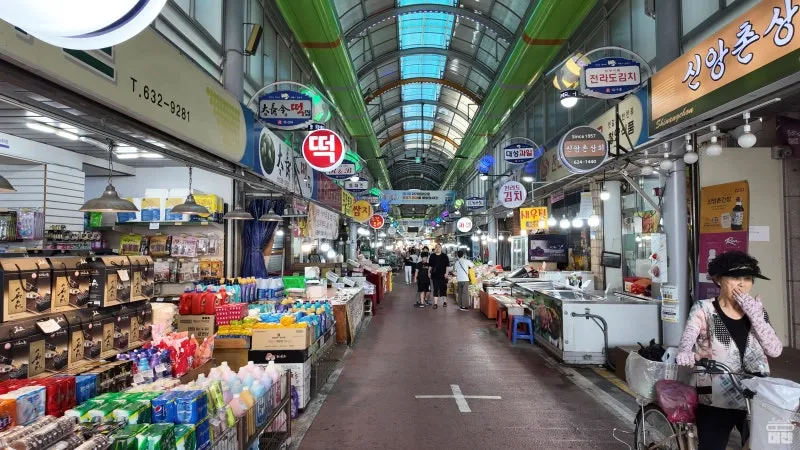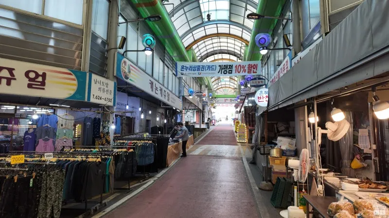 중리전통시장은 아케이드 형식으로 지붕이 설치되어 있어 날씨에 관계 없이 편안하게 둘러볼 수 있다는 것이 장점입니다. 시장의 점포뿐만 아니라 전체적으로 공영주차장이나 화장실 등의 편의시설도 쾌적하게 관리되고 있어 더욱 좋더라고요.
