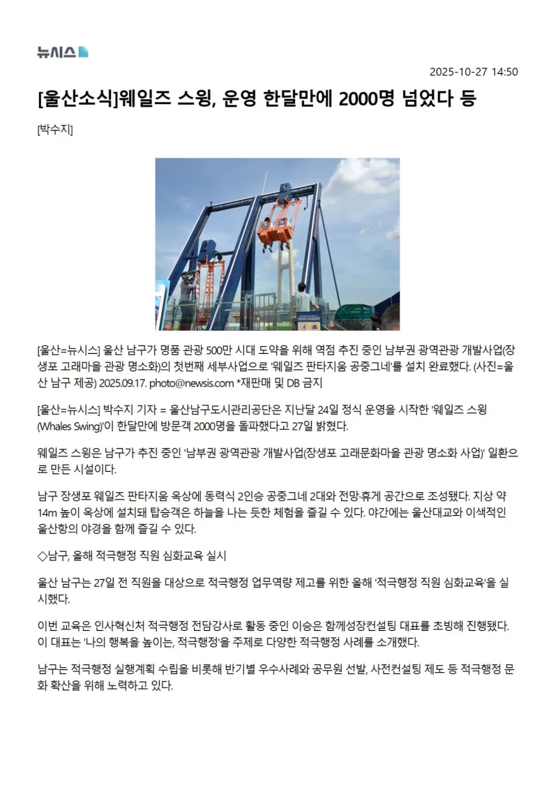 {"title":"[행복남구 오늘의신문] 인기폭발!🐋웨일즈스윙 타러 🐬장생포고래문화특구로 오세요🐳🤗😉(10월 28일 화요일)","source":"https://blog.naver.com/ulsan-namgu/224056203770","blogName":"울산광역시..","domainIdOrBlogId":"ulsan-namgu","nicknameOrBlogId":"울산광역시남구청","logNo":224056203770,"smartEditorVersion":4,"outsideDisplay":false,"meDisplay":true,"lineDisplay":true,"cafeDisplay":false,"blogDisplay":false}