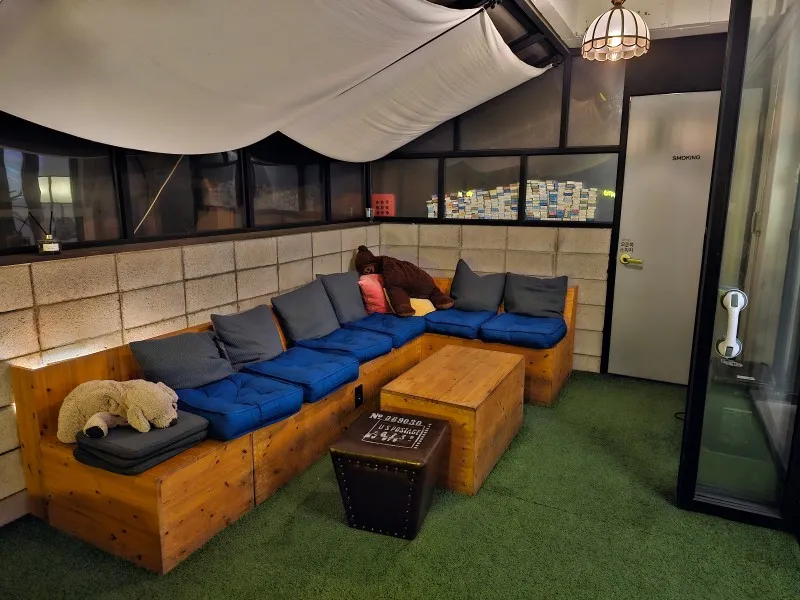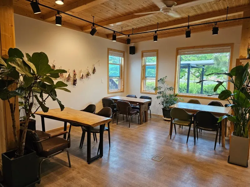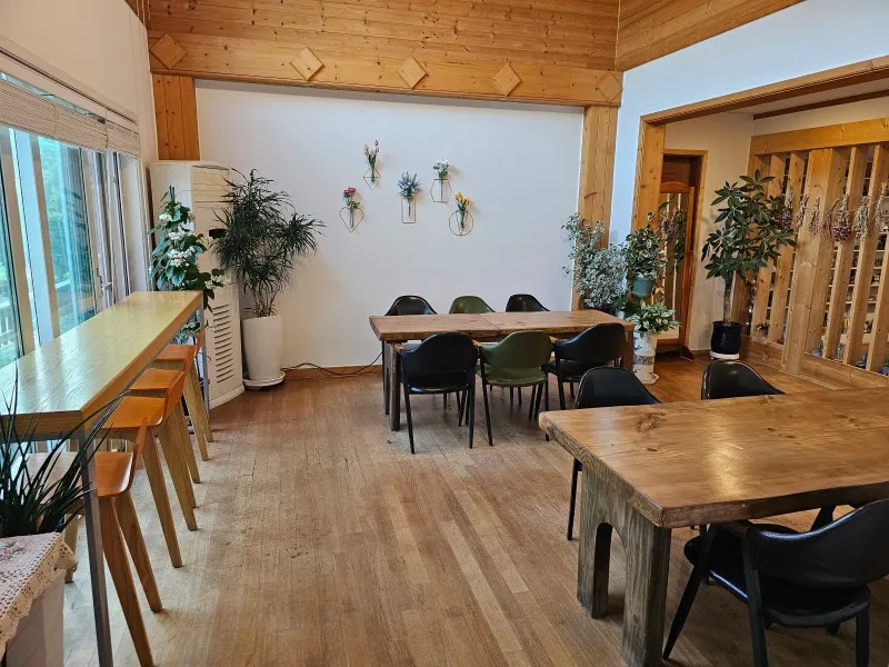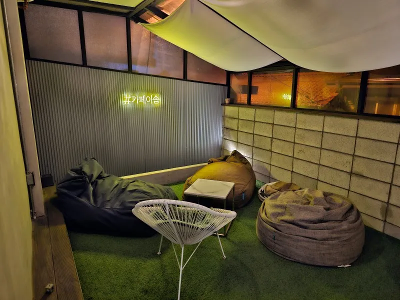 다양한 좌석 배치와 테라스의 캠핑장 분위기까지