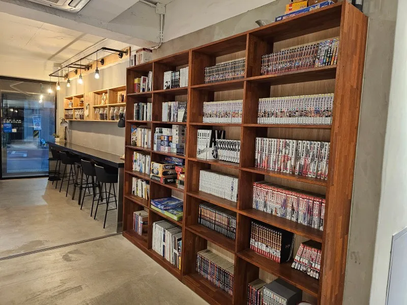 만화 카페처럼 만화책과 보드게임이 비치되어 있고